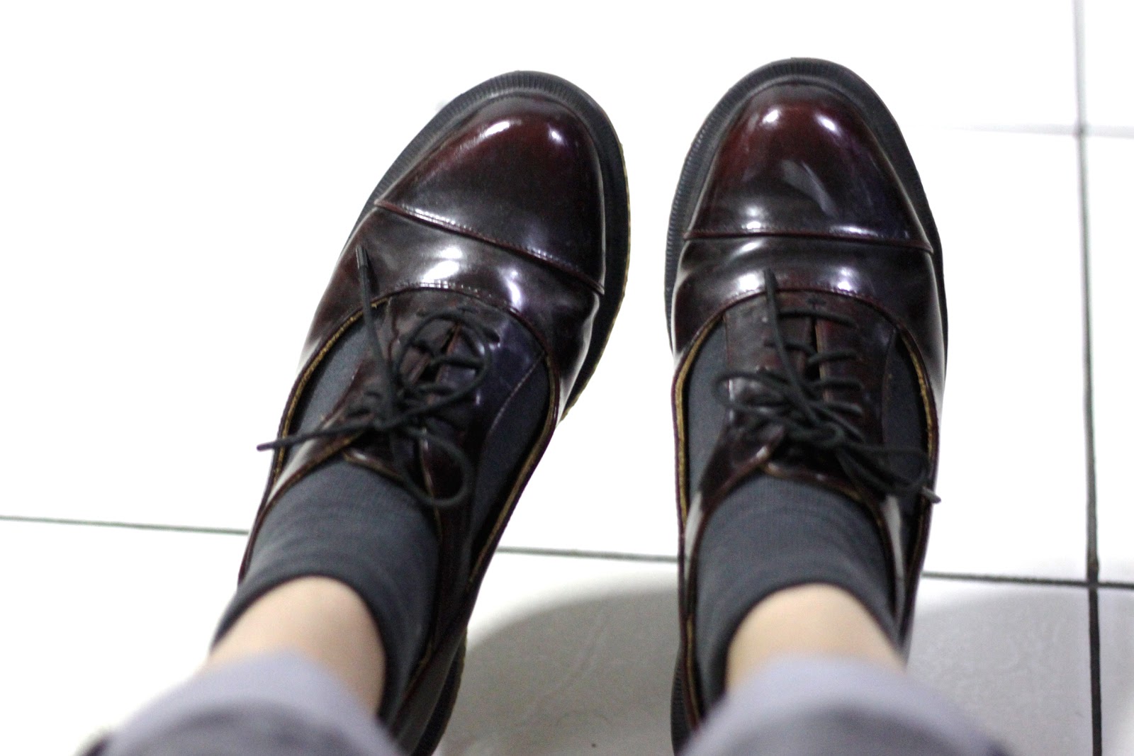 | top: garage sale; necklace: given by my juniors; pants: guess; socks: h&m; shoe: doc. marten |